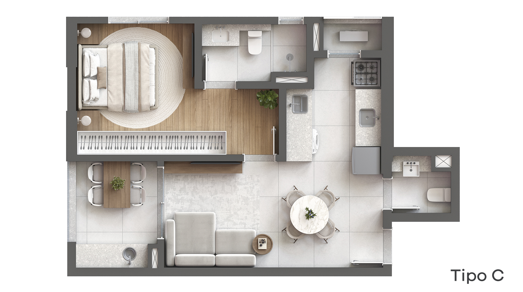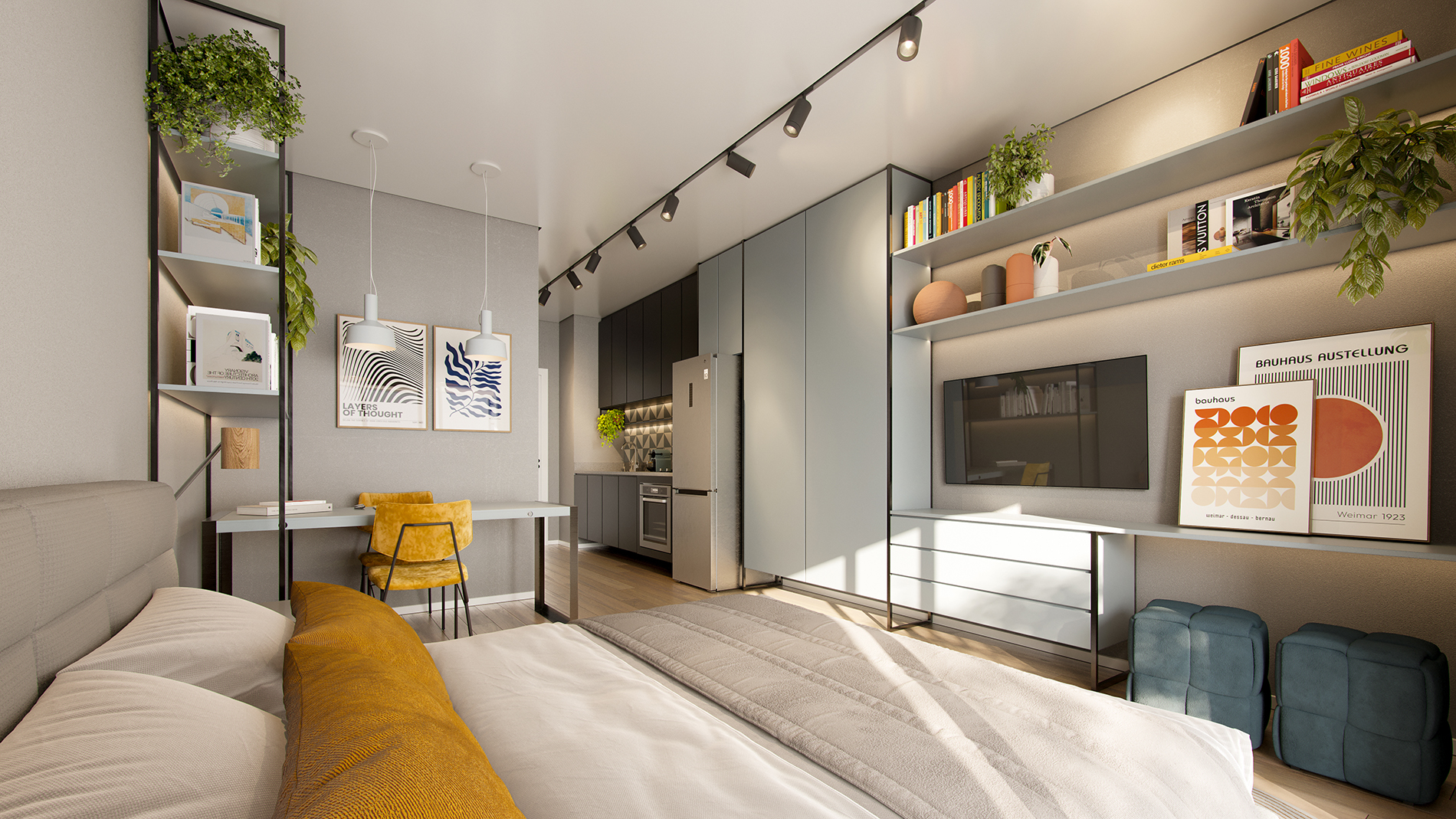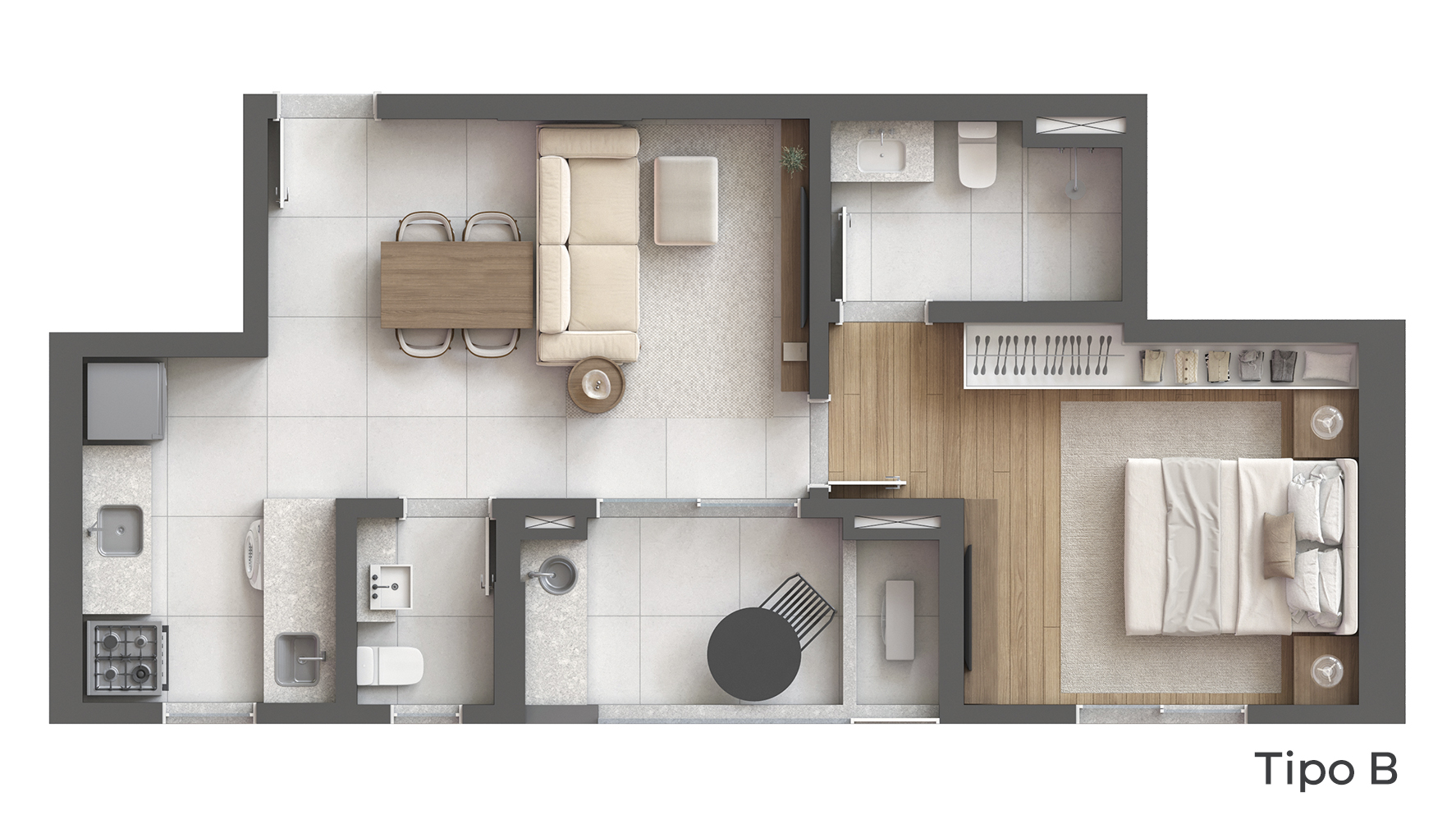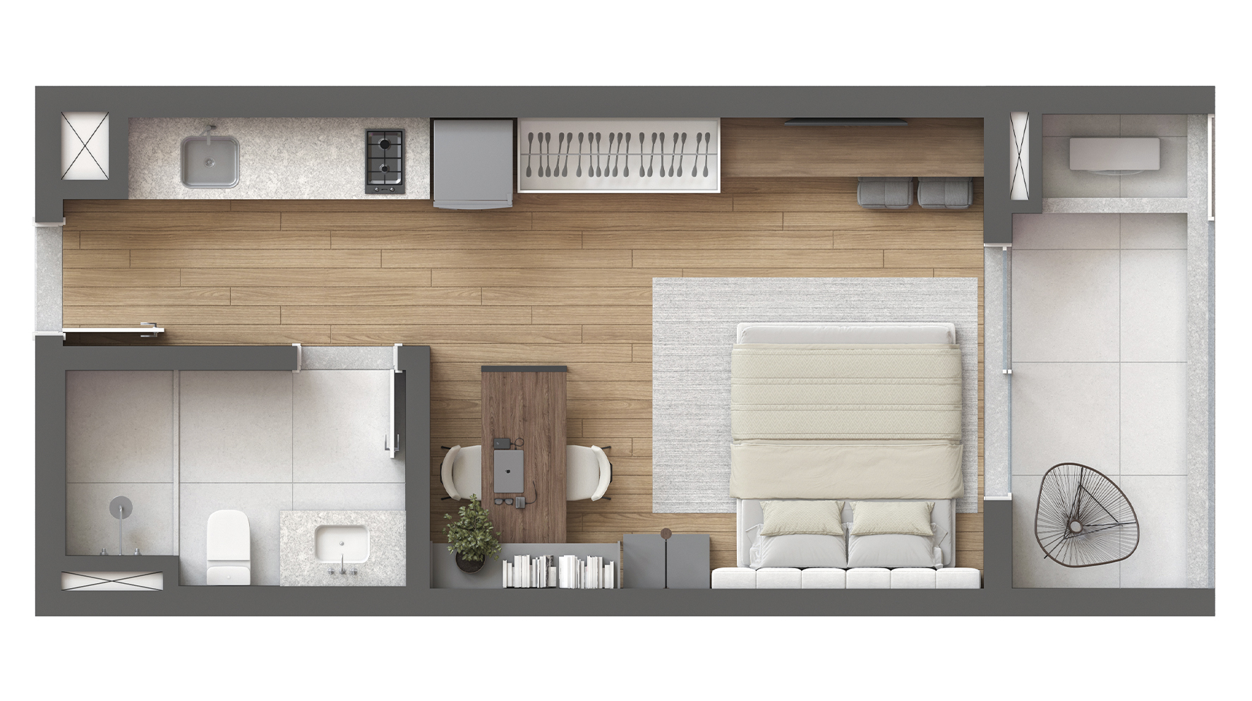 Studios de 37 a 39 m². Compactos, funcionais e cheios de personalidade. Para quem busca independência com estilo ou uma excelente oportunidade de locação